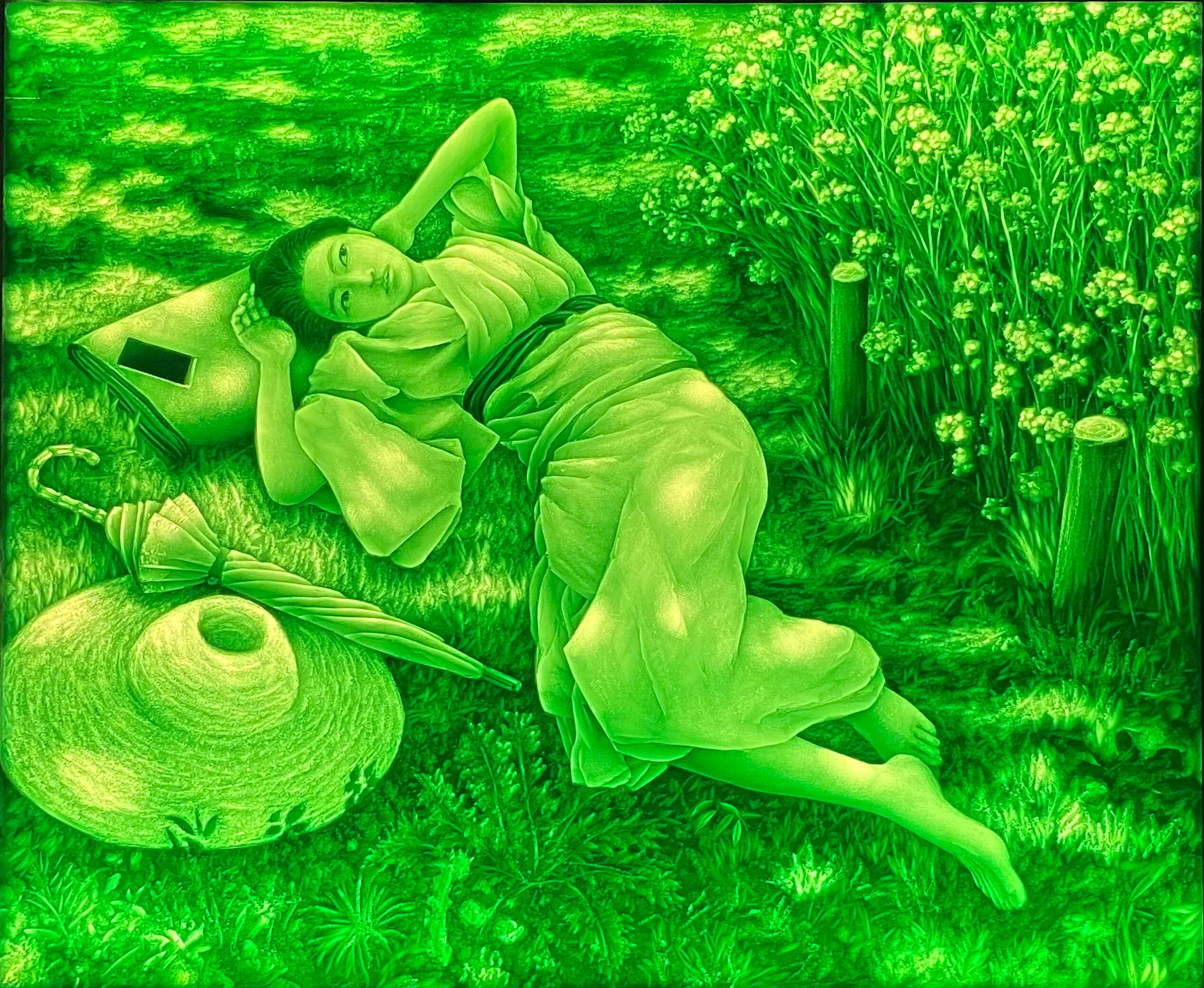 2024年末、ウッドワン美術館での展覧会にあわせて制作された本作は、洋画家・黒田清輝の名作「木かげ」へのオマージュとして誕生しました。